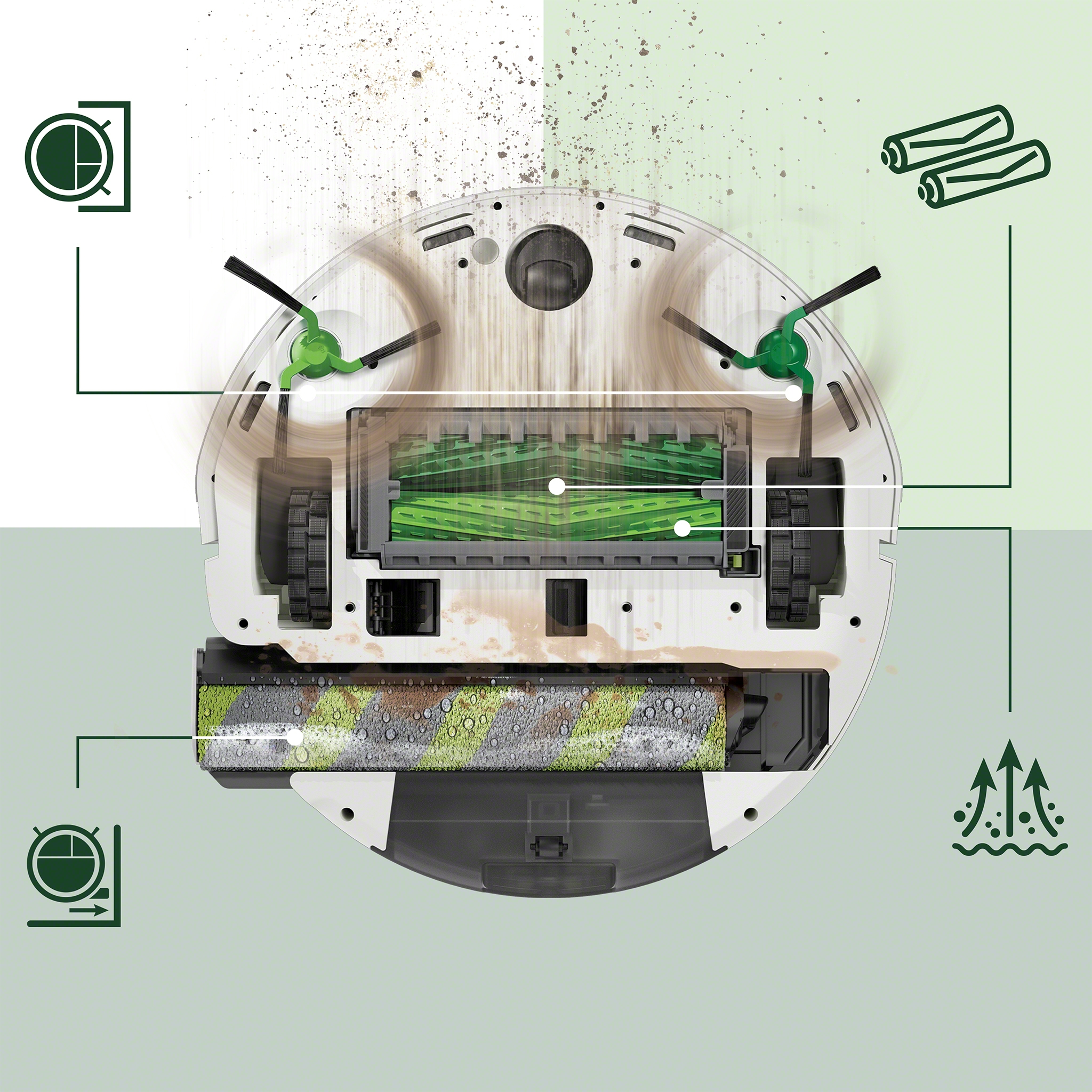 Grâce au rouleau de nettoyage PowerSpin™ auto-nettoyant avec PerfectEdge®, au lavage chauffé, à la fonction SmartScrub, à une puissance d’aspiration 175 fois supérieure*, à deux brosses en caoutchouc et à deux brosses pour les coins et les bords, il élimine les saletés, des poils d’animaux jusqu’au café renversé. *En mode de nettoyage SPOT, avec batterie pleine, comparé aux robots de la série Roomba® 600.